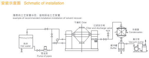 ● 物料处于真空状态,蒸汽压下降使物料表面的水份(溶剂)达到饱和状态而蒸发了,并由真空泵及时排出回收。物料内部的水份(溶剂)不断的向表面渗透、蒸发、排出,三个过程不断进行,物料在很短时间内达到干燥目的。